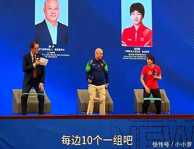 62岁的李宁,果然像个小学生通常,矜重地随着全红婵学健身动作。
